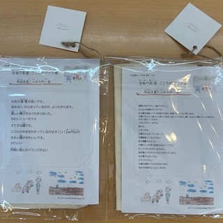 それぞれに、賞状、参加賞である小物入れ、投票してくれた方の個別コメントをいただきました。小物入れには縮小された自分の作品がおさめられています。とてもよい記念になったとみんな喜んでいました。